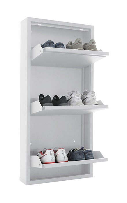 Обувница Практик ОМ-3 белая предназначена для хранения обуви. Обувница состоит из трех отделений, каждое отделение вмещает 2 пары обуви (до 43 размера). Изготовлена из стали, поставляется в собранном виде. Цвет: белый Ral 9003. Тип покрытия: порошковое